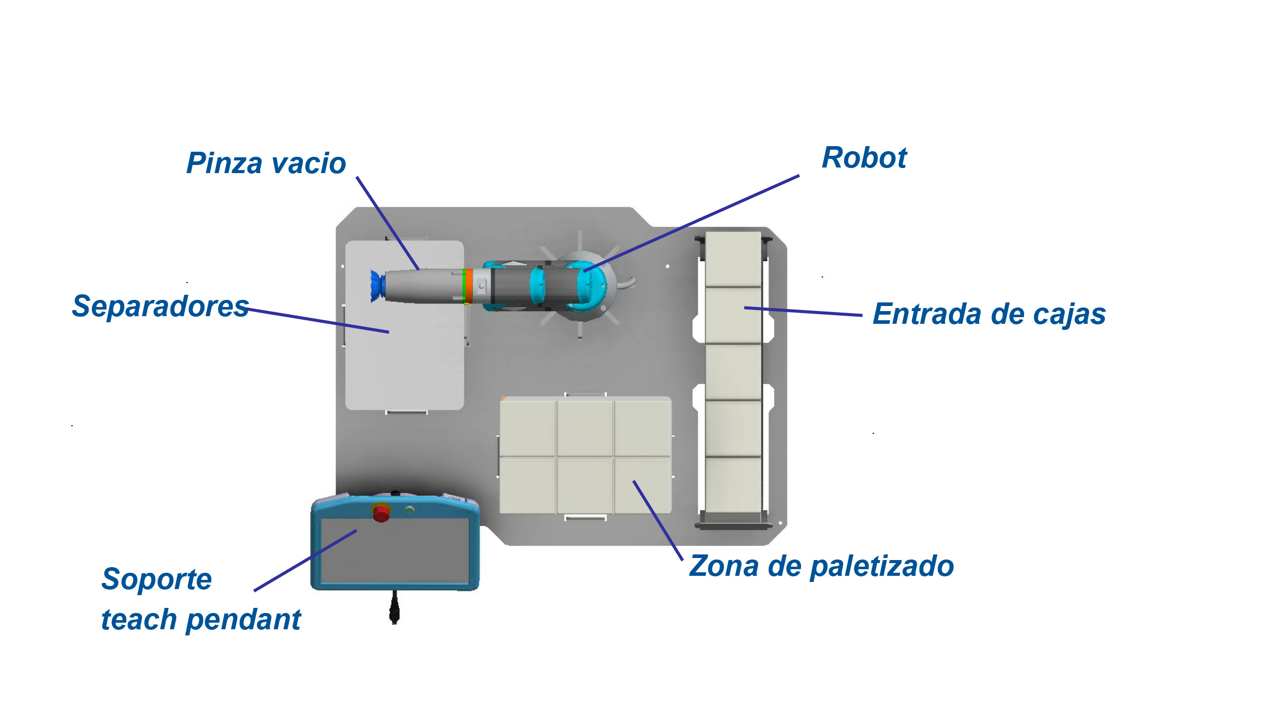 | Kit formación | Kit paletizador, Mesa de trabajo, Mini compresor, Pinza 4 ventosas |